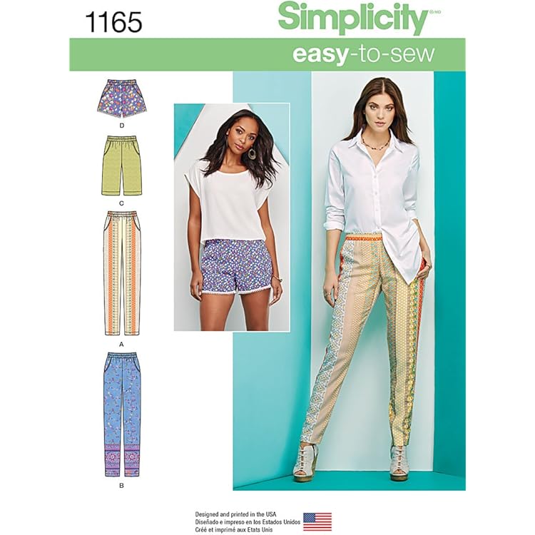 Amazon Com Simplicity Easy To Sew Pattern 1165 Misses Slim Pull On Pants Long Or Short Shorts Sizes 6 8 10 12 14 Arts Crafts Sewing